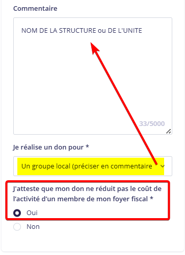 Il devra préciser en commentaire pour quelle unité il fait le don.