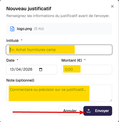 Tu es chef d'unité, assistant, équipier et tu veux transmettre tes justificatifs de dépenses à ton Chef de groupe ou Trésorier.